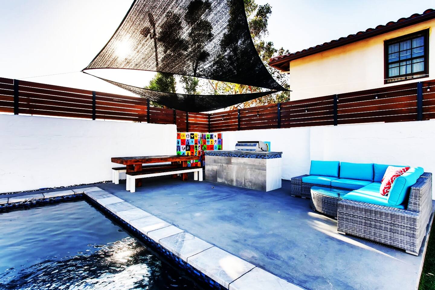 This home has been uniquely designed to be combined from 3 units to 1. Enjoy each unit separately or combine for the ultimate experience. COMBINE THESE THREE UNITS FOR THE ULTIMATE SAN DIEGO EXPERIENCE! Completely re-designed, this private oasis located in the heart of San Diego’s historic Old Town is the best on the market. Newly renovated with every possible option: gourmet, fully-furnished chef’s kitchen, indoor-outdoor entertaining, private lounges, huge guest rooms, en-suite bathrooms, custom closets and modern appointments throughout. This luxurious property boasts sophisticated living with just the right amount of edge. Custom street art, and converted garage doors flood each modern living space with light and character. This unbeatable location is just steps from dining & nightlife and a short uber to San Diego beaches, airport, shopping and attractions. Perfect for an elevated vacation get-away or for entertaining groups! Private parking available for your convenience. arrangements can be made for a professional chef to prepare meals for the entire stay or nightly/daily. we can provide a massage therapist to come to the property. we can provide daily cleaning service for longer stays. we can offer car rental services. cars can be dropped off and picked up at the property if needed. we can also offer group yacht tours. please message for details.