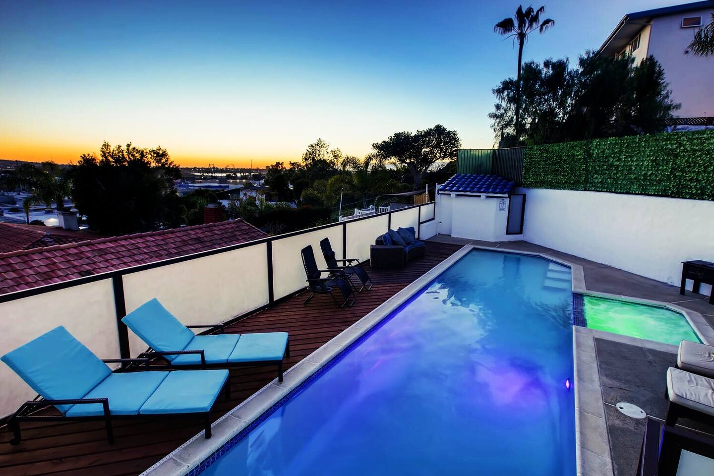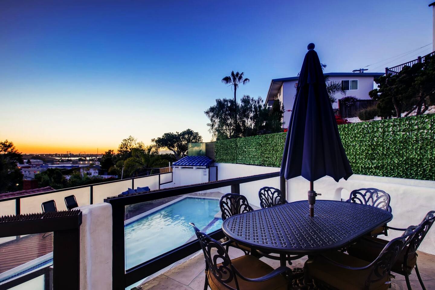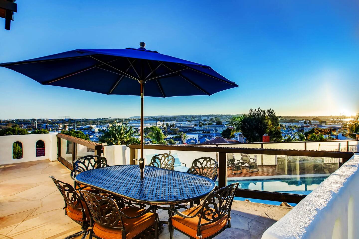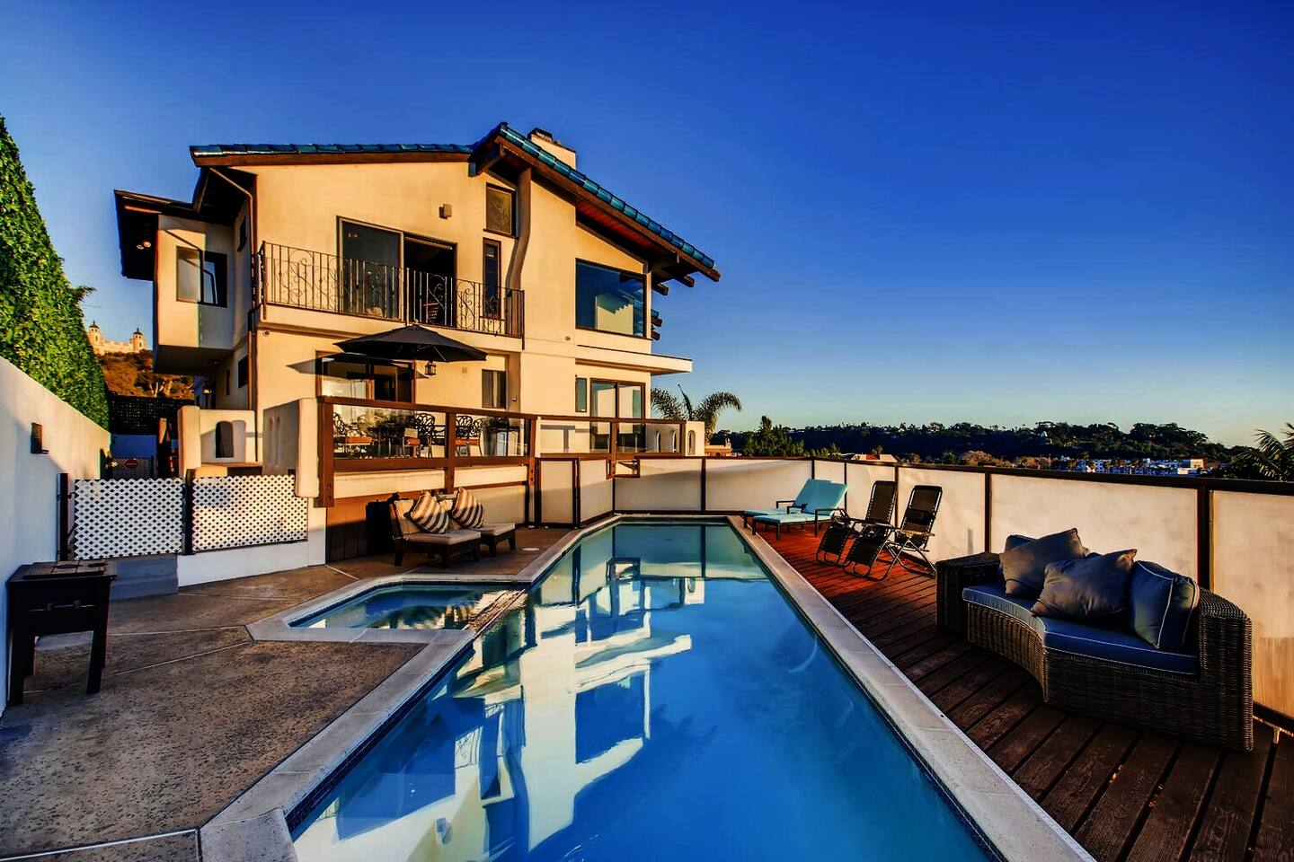 Experience the dream in this one-of-a-kind Spanish Hillside Oasis! this 3450 Square Foot gem is Nestled on the hillside below the famous San Diego historical Cathedral in Bay Park/Old Town cusp, Casa Blanca boasts panoramic views to the Bay, Point Loma, La Jolla, Sea World, and Downtown. This inspired 4-bedroom (4 beds), 3 (full) bathroom Spanish Villa features a grand, open-plan living area & generously sized bedrooms. entertain around your grand island kitchen, spacious dining area, and coffee bar complete with dual wine fridges. Lounge in the generous open-living area and enjoy terrace dining where you can take in the sunset every night! Casa Blanca is beautifully appointed with a private pool & jacuzzi, huge master bedroom with private patio and private jacuzzi. Each bedroom has spectacular views. With easy access to 5 and 8 Freeways, this perfect vacation house is 3 miles from San Diego Airport, 3 miles from Sea World and within a mile to restaurants, shopping and more. also close to all San Diego’s major attractions! arrangements can be made for a professional chef to prepare meals for the entire stay or nightly/daily. we can provide a massage therapist to come to the property. we can provide daily cleaning service for longer stays. we can offer car rental services. cars can be dropped off and picked up at the property if needed. we can also offer group yacht tours. please message for details.
