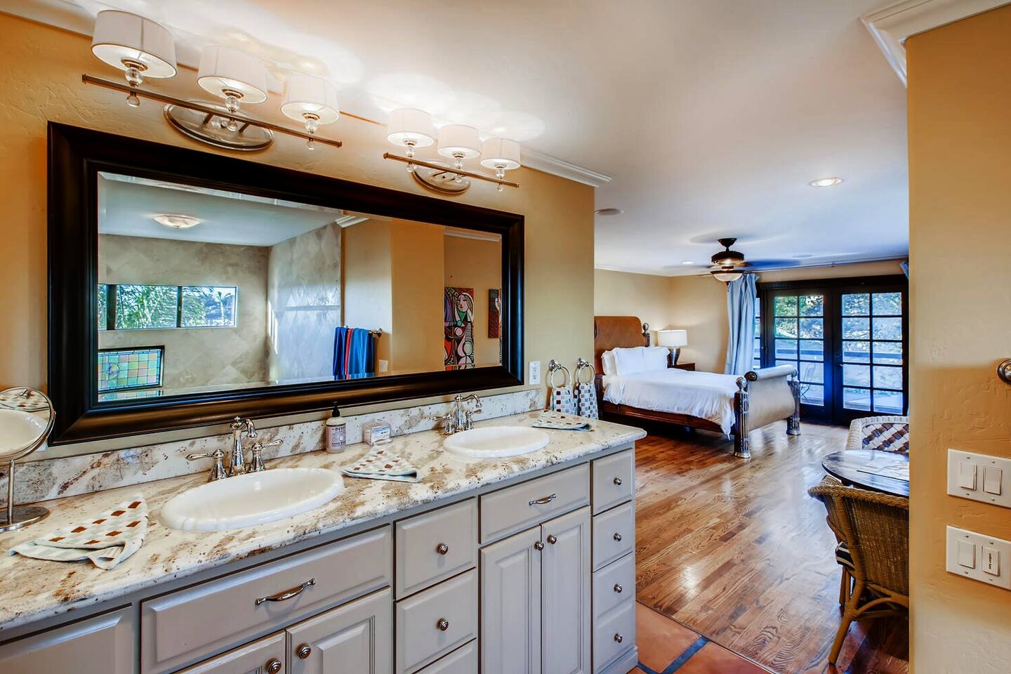Escape to a private 3450SF paradise in the center of it all: experience Casa Blanca-a breathtaking, award-winning Spanish Villa settled peacefully in the heart of San Diego. Literally, four miles or less and you’ll be anywhere in SD! Relax to music by the pool/jacuzzi, enjoy time with family&friends gathered around your huge entertaining kitchen and open concept lounge floor,and enjoy spectacular sunset meals from any of your five balconies. Casa Blanca, imagination is your only limit.Join us!